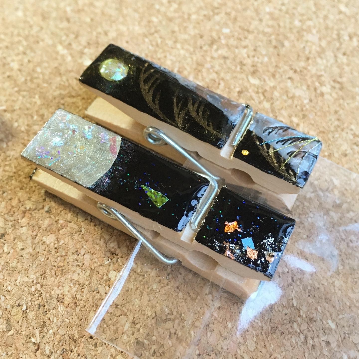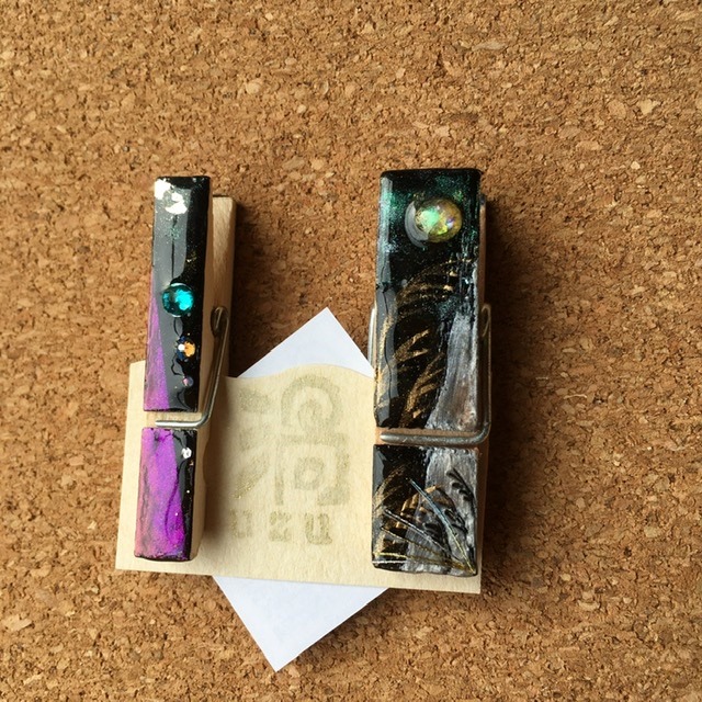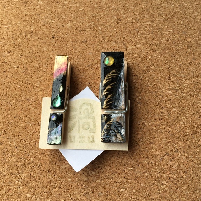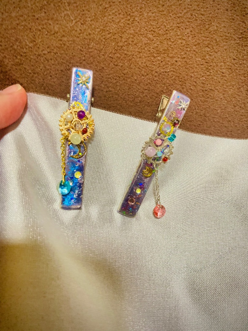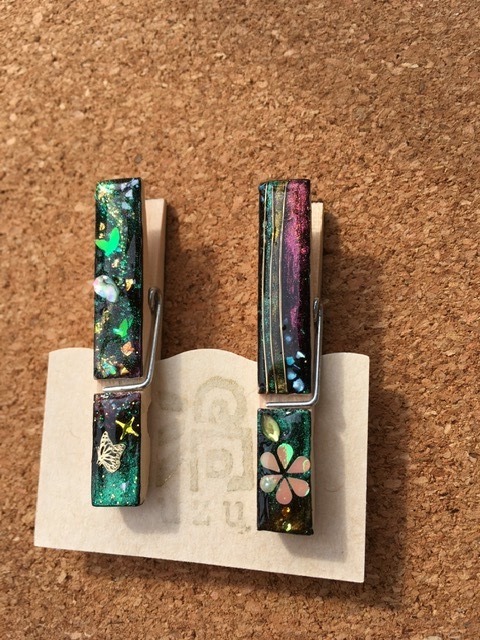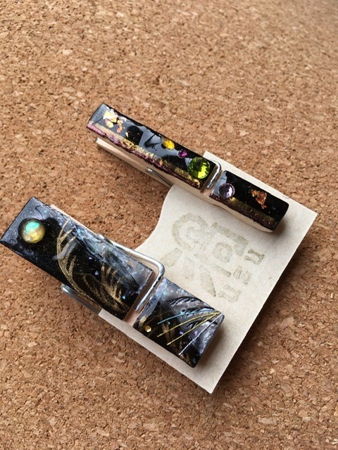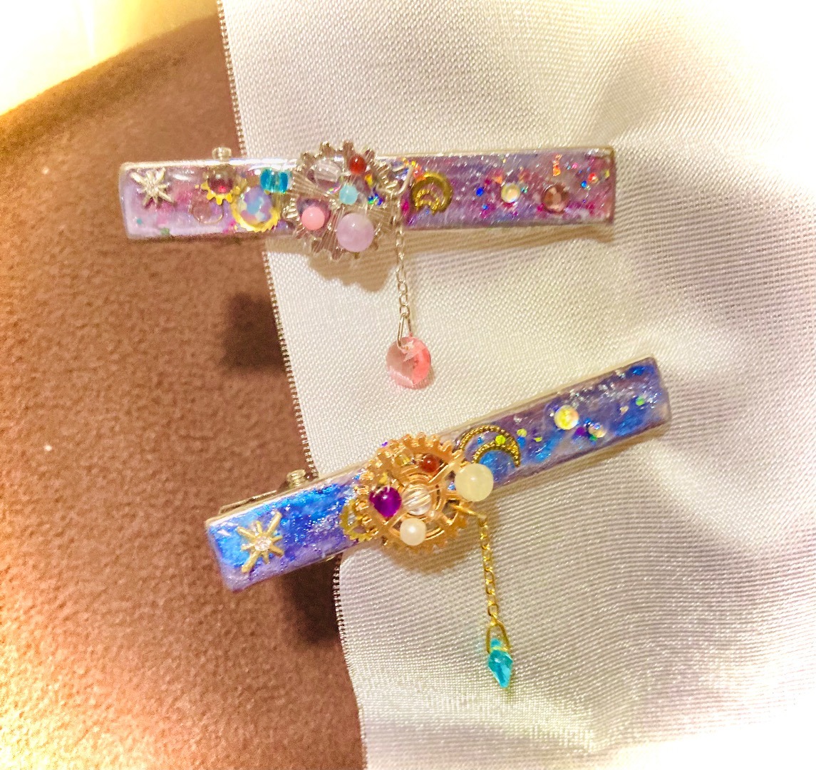 朝の澄んだ空気の中の雪木立ちをイメージ。レジンアートを施したクリップ。ヘアアイテム・文具・服や布バッグの装飾など… 用途を限らず使える便利なクリップです。