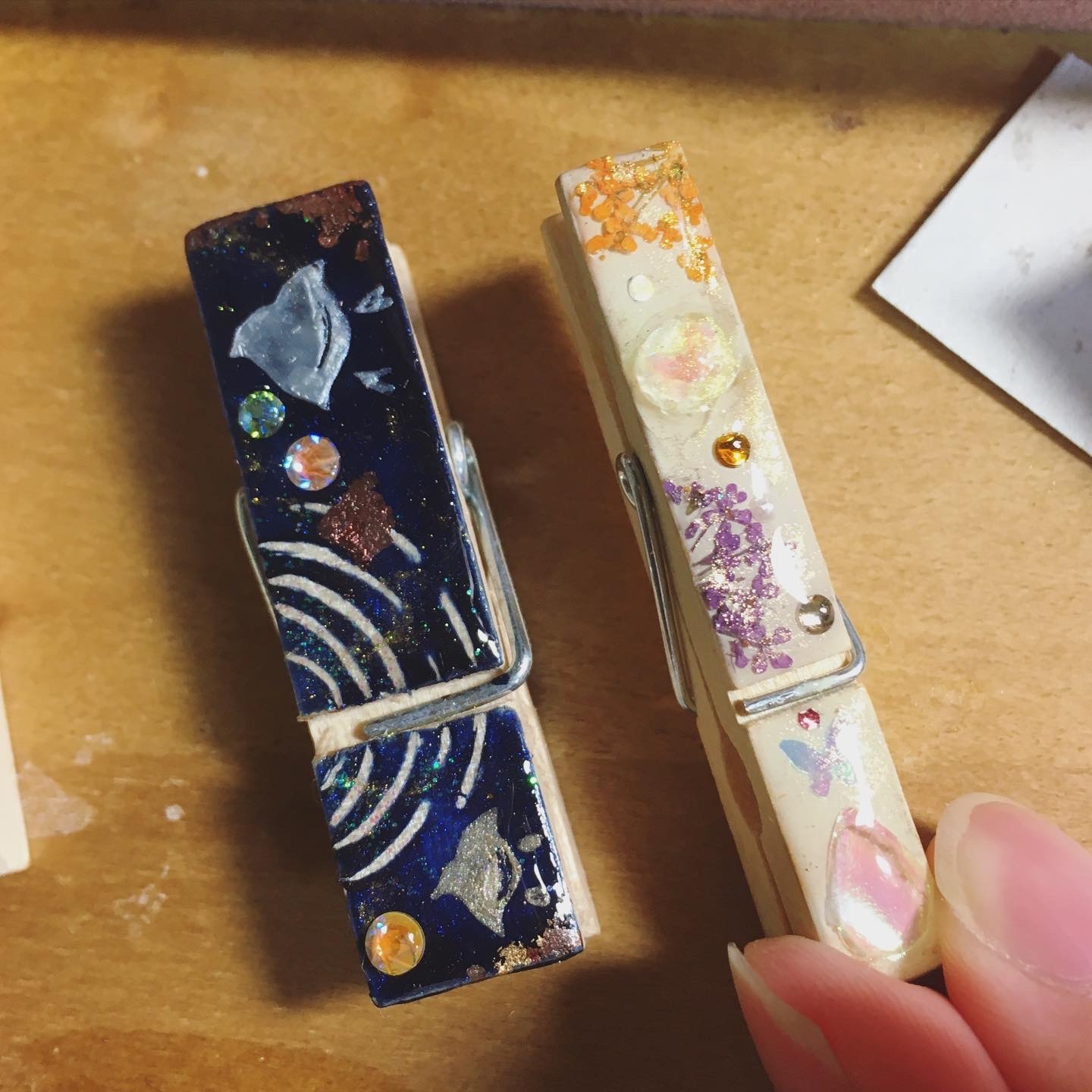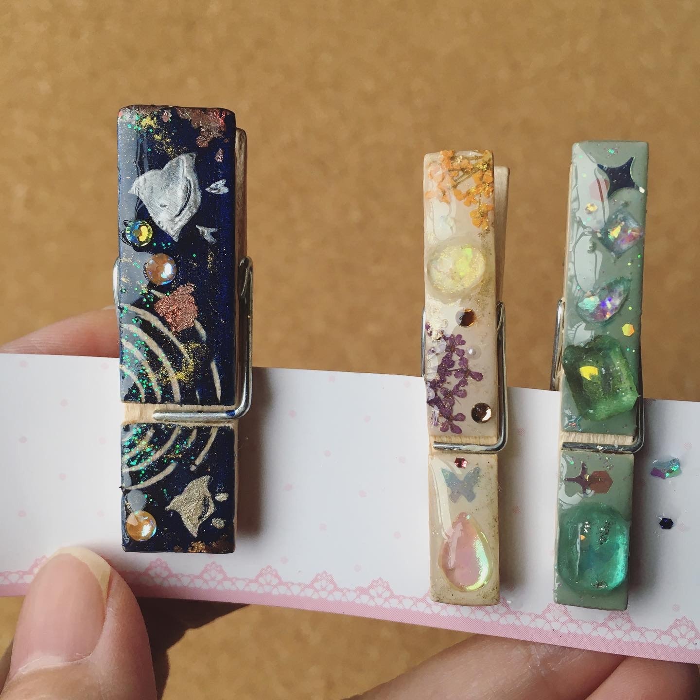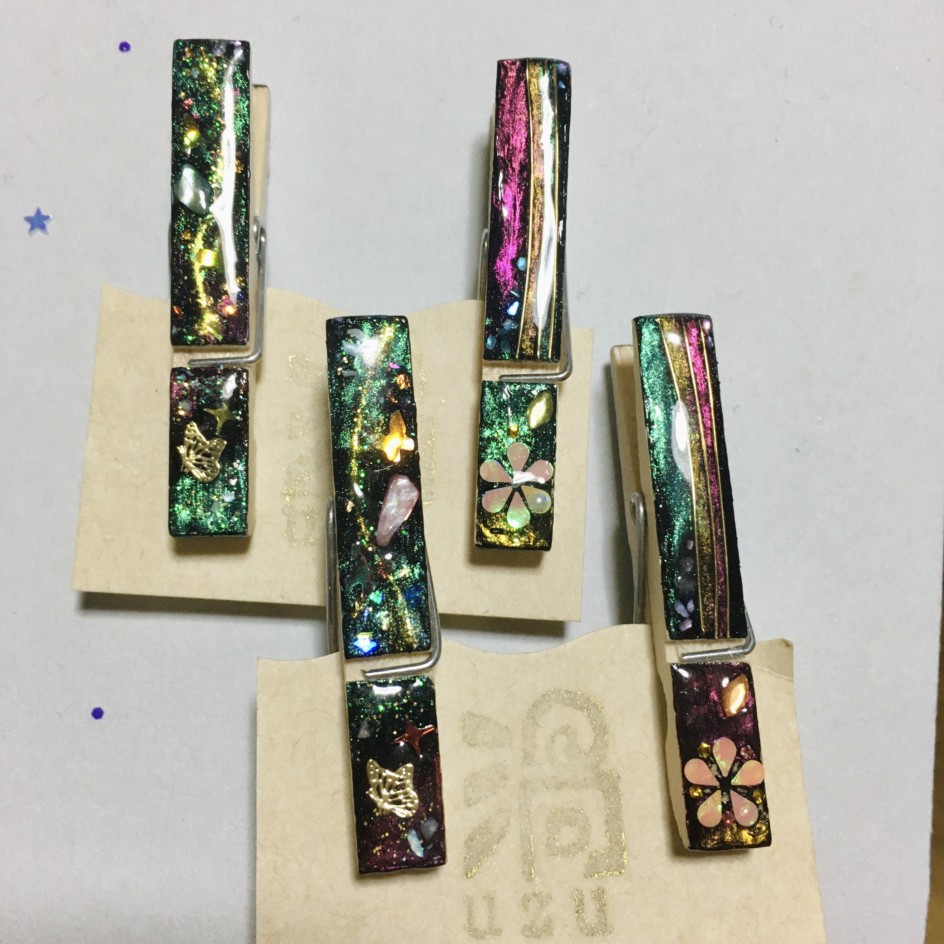 朝の澄んだ空気の中の雪木立ちをイメージ。レジンアートを施したクリップ。ヘアアイテム・文具・服や布バッグの装飾など… 用途を限らず使える便利なクリップです。