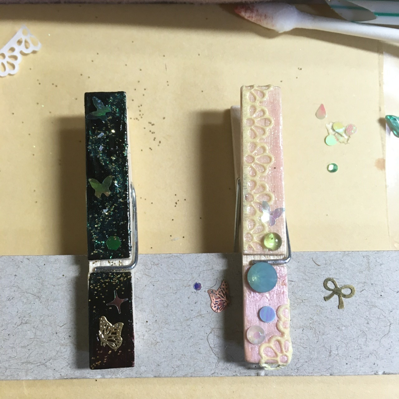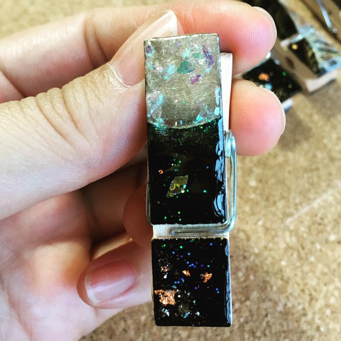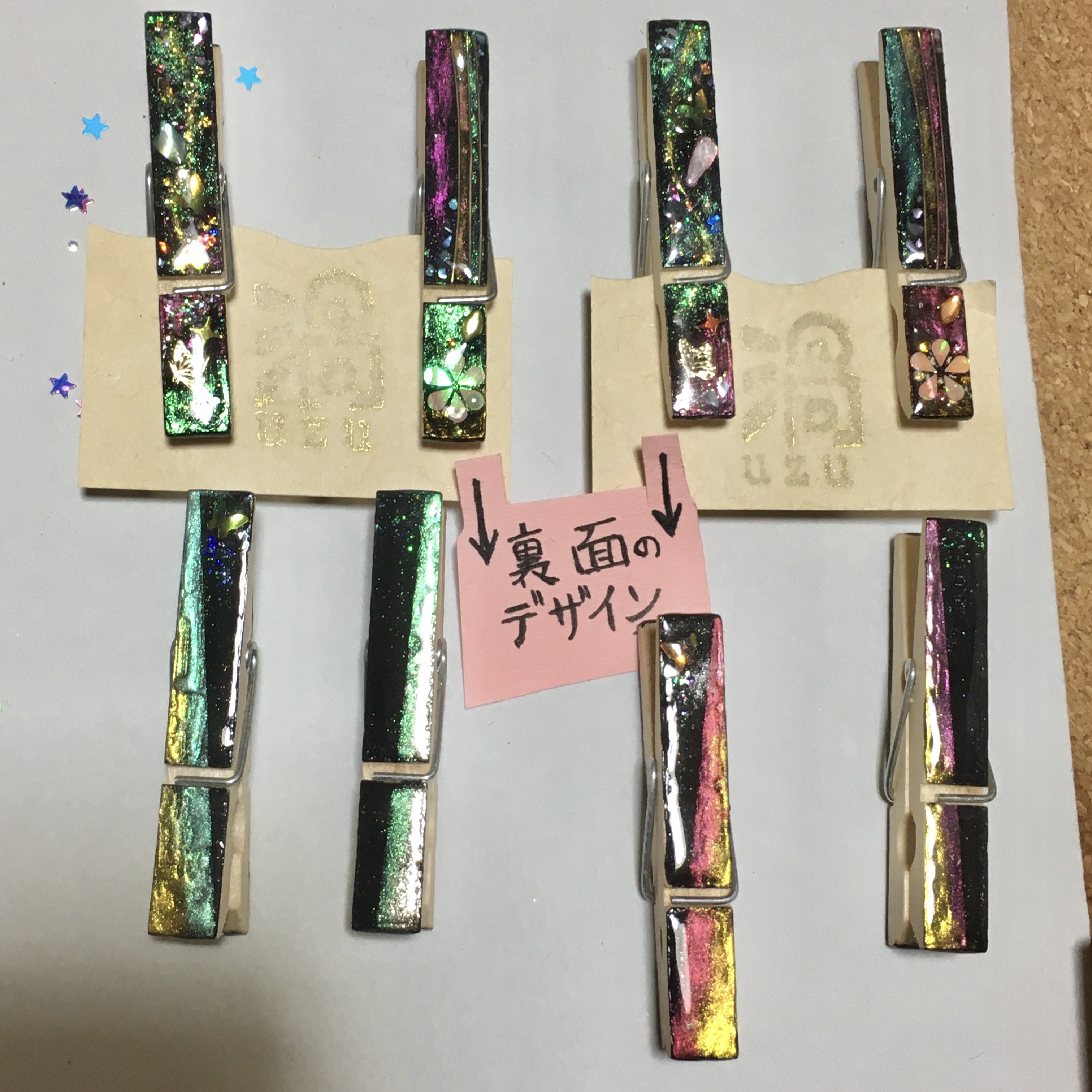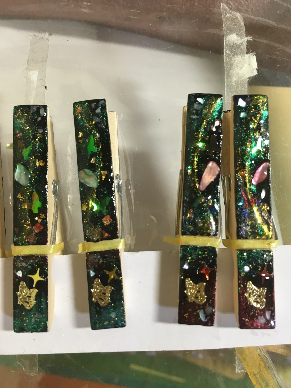 朝の澄んだ空気の中の雪木立ちをイメージ。レジンアートを施したクリップ。ヘアアイテム・文具・服や布バッグの装飾など… 用途を限らず使える便利なクリップです。