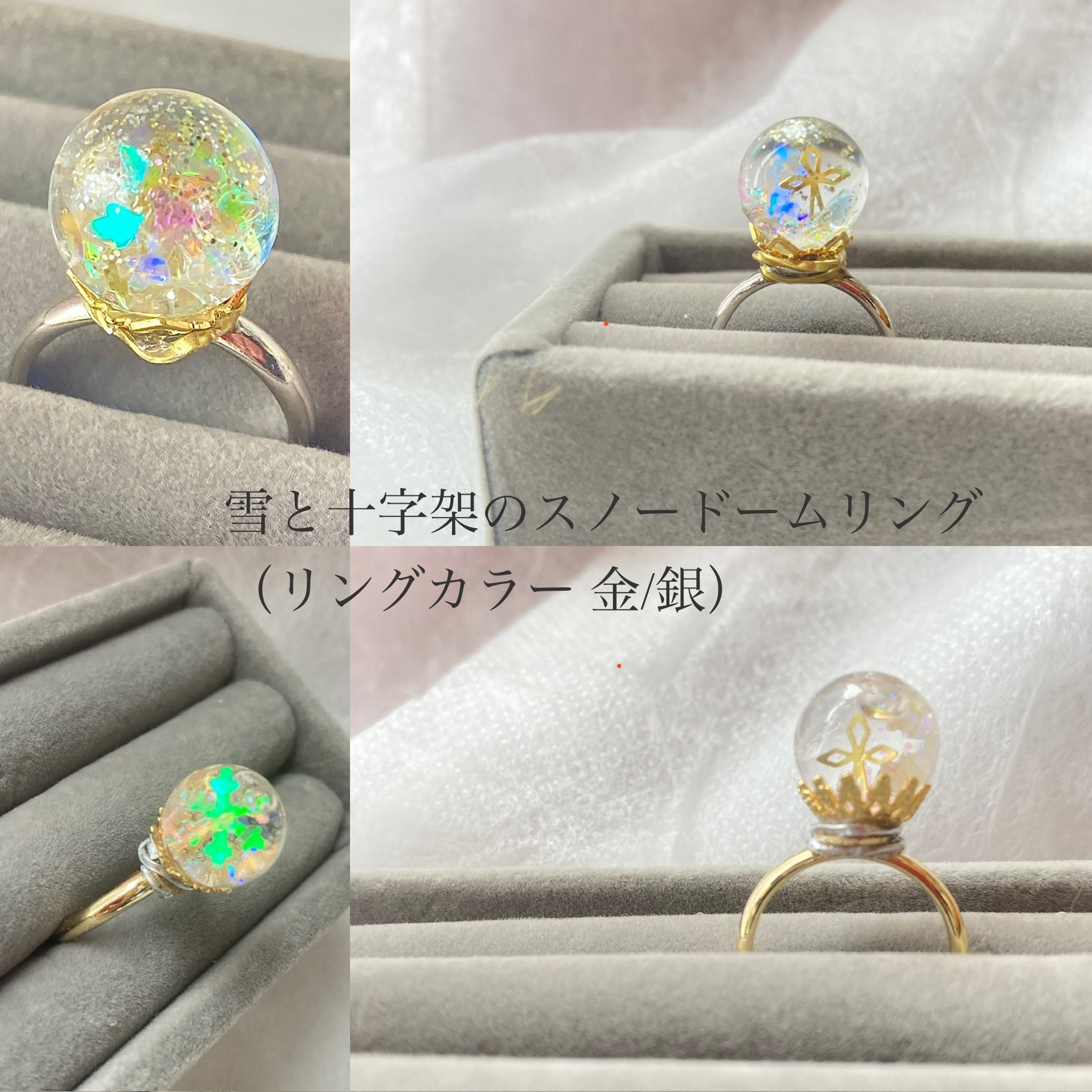 C雪と十字架のスノードームリング(指輪カラー 金/銀)