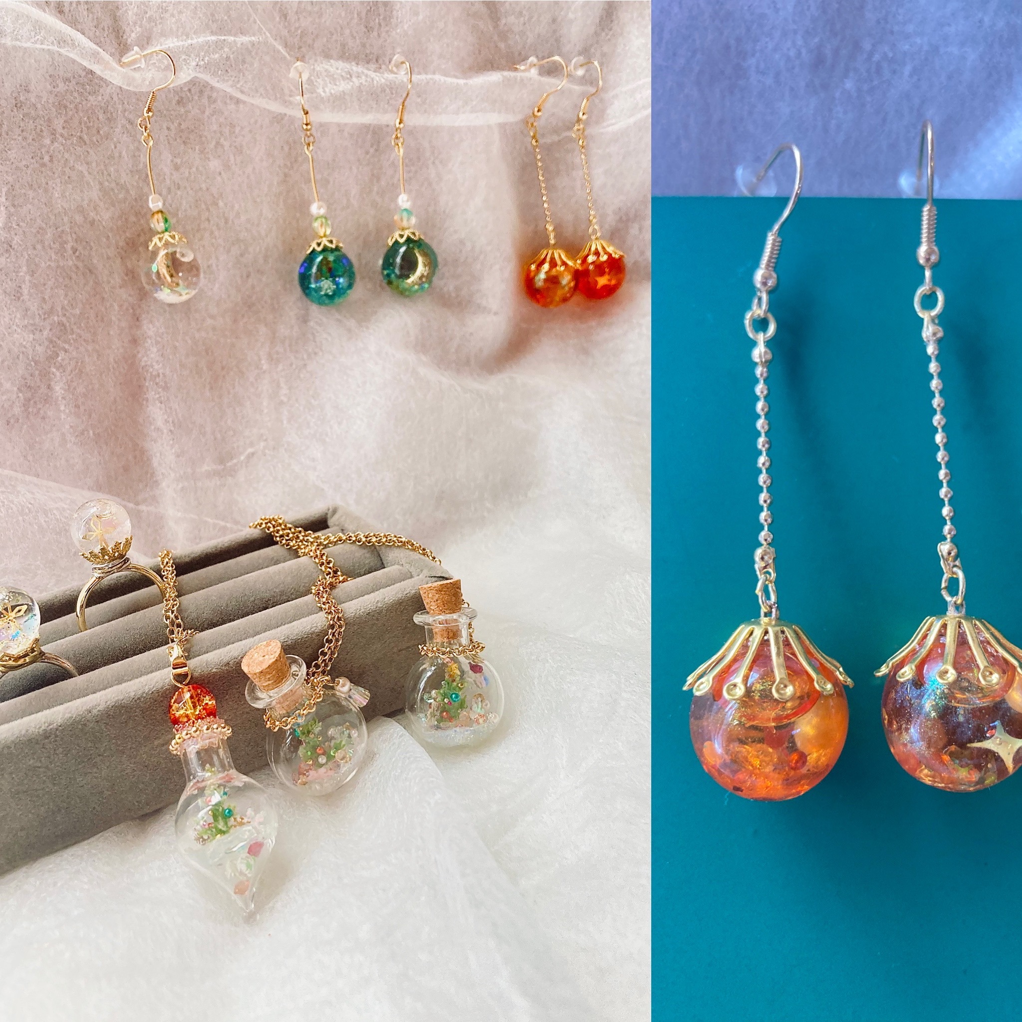 @スノードームの耳飾り(オーナメント風・オレンジ)